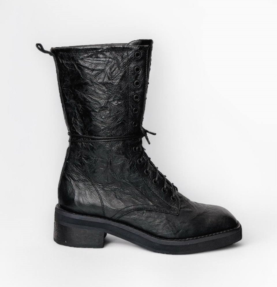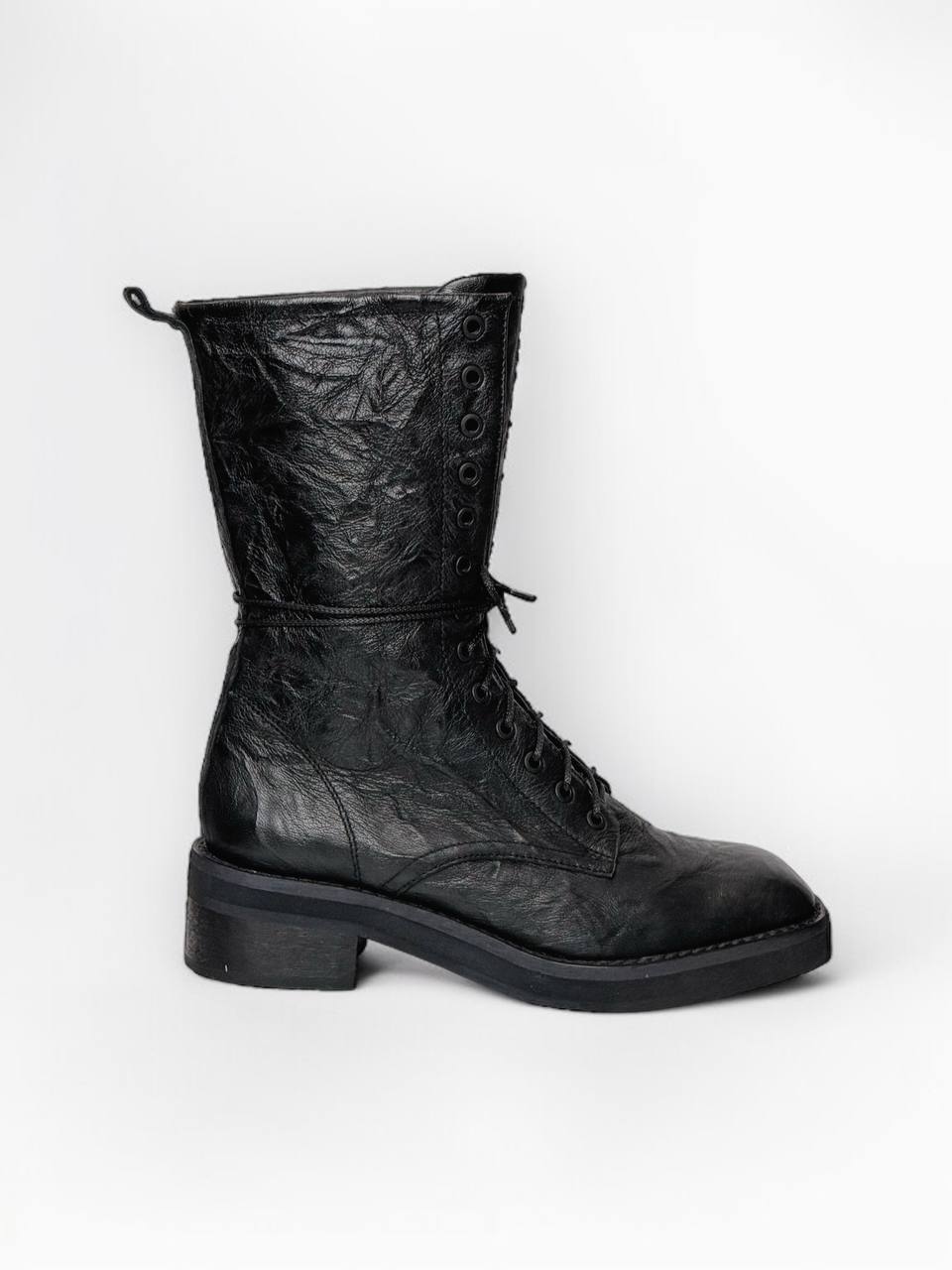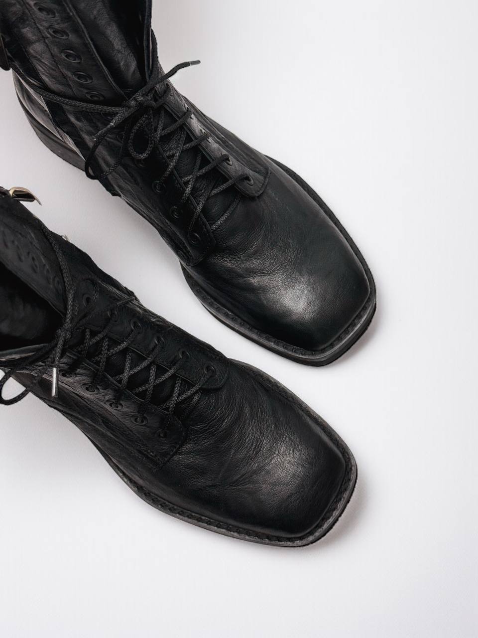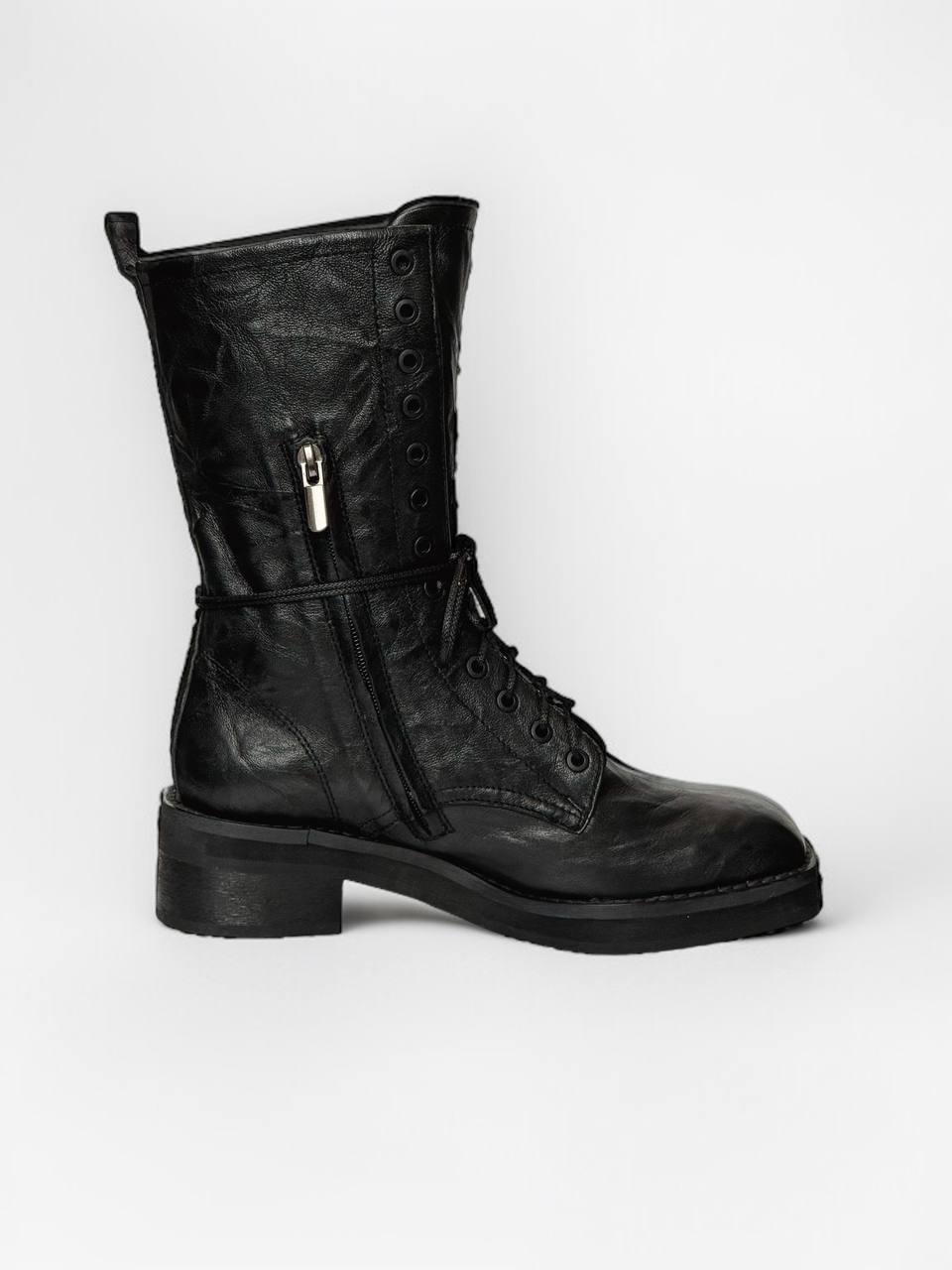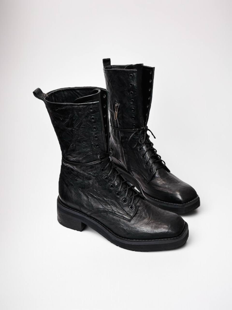 Black ankle boots Kaya by HAMELEON — elegant women’s mid-heel shoes made of premium Italian vintage leather.