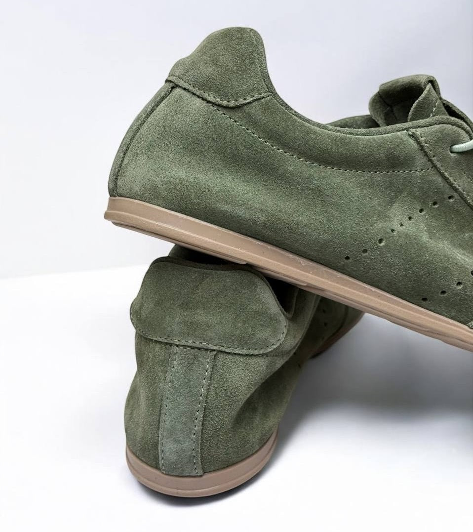 This pair of shoes fits on a wide foot, and the lifting height is regulated by lacing. Check the size chart in the description before ordering.