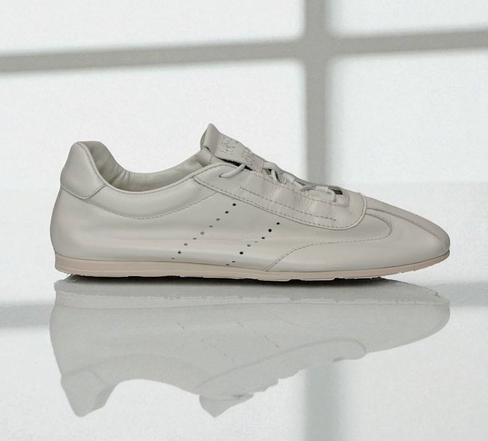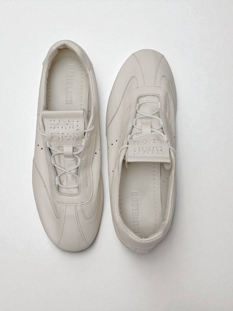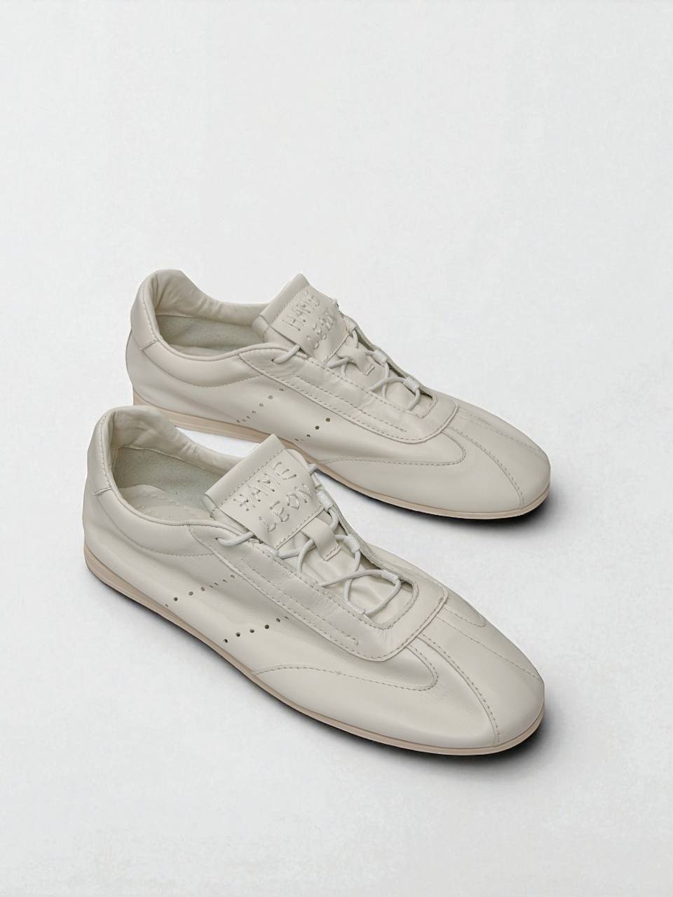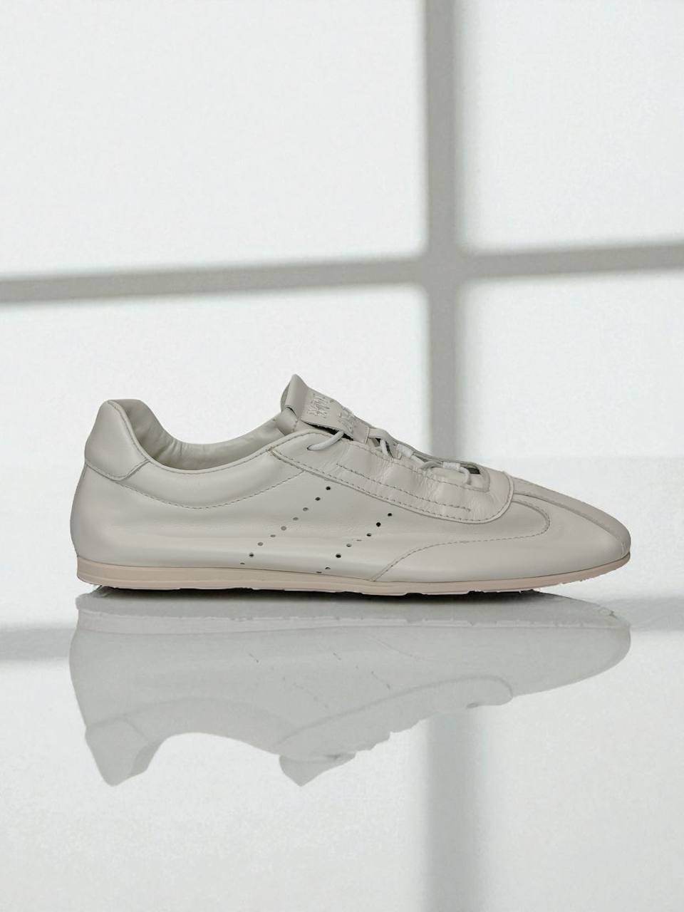 White sneakers with low soles, made of natural italian suede.
